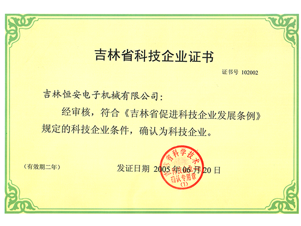 吉林省科技企業(yè)證書